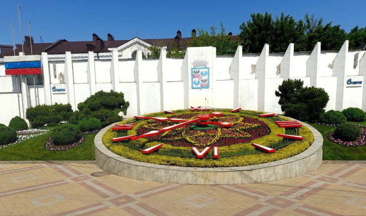 Табло цветочных часов сотрудники Центра озеленения и экологии города украсили знаком качества «Сделано на Кубани». Для оформления использовали свыше 2 тыс. живых цветов. Это вербена, тагетес и петунии. Сообщается, что растения распустятся, а логотип станет желто-розовым к 1 июля, старту X юбилейного конкурса в области качества. Растения будут цвести все лето. Осенью их заменят новыми.